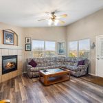 In the heart of Sonoma Ranch, awaits this 1962 sq ft haven of 4 bedrooms providing flexible living options. Step inside to discover updated wood look vinyl flooring that adds a touch of modern elegance. The living room is a sunlit sanctuary with large windows & vaulted ceilings, creating an airy & inviting atmosphere. Open archways seamlessly connect the other living spaces, exuding flow & elegance. The kitchen is a delight, featuring plentiful cabinets, a convenient island for meal prep & sleek SS appliances. The dining room & cozy family room, complete with a fireplace, form the perfect gathering space. Escape to the tranquil owner’s suite through double doors, where comfort awaits. The ensuite bathroom is a spa-like retreat w/ a double vanity, jetted tub & a spacious walk-in closet. Down the hall, 3 additional bedrooms offer flexibility, with 1 transformed into a functional office space. Relax & entertain in the enclosed back patio & expansive green backyard with mountain views & no backyard neighbors.